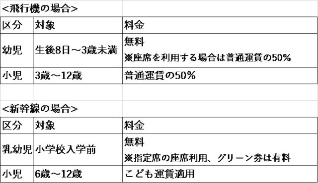 旅先の場所にもよりますが、飛行機や新幹線などで行くことが多いのではないでしょうか?飛行機や新幹線の子ども区分や料金について確認してみましょう。