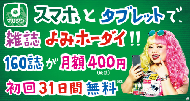 「dマガジン」~160誌以上が月400円(税抜)で読み放題!