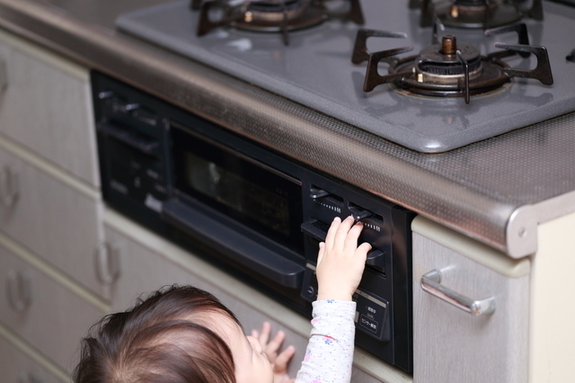ストーブやキッチンで、やけどの危険がある所では目印を
