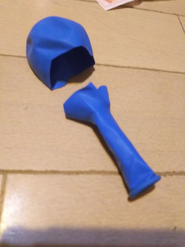 風船はたるまないようにかぶせてください。たるむようであればさらに小さくカットしてからかぶせましょう。