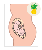 髪・爪が生え始め、上体を後ろにそらしたり、首を左右に振ったりと、運動(胎動)が活発に。聴覚の発達が始まるのもこの時期です。