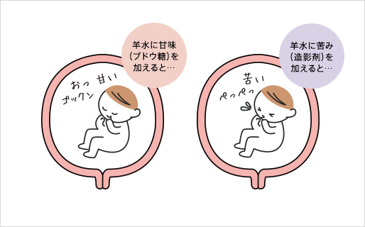 とある実験で、妊娠中のお母さんのお腹の中に細い管を入れて、羊水に「甘み」と「苦み」を加えたところ、甘い羊水は良く飲むのに対し、苦い羊水は飲む回数が減ったことが確認されています!