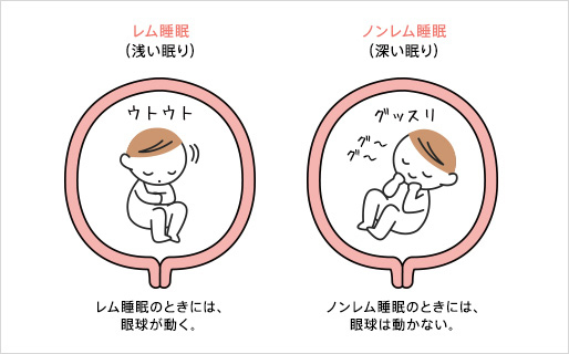 妊娠37週頃の赤ちゃんは、一定のリズムで、閉じたまぶたの下で“目が動いている期間“と“動いていない期間“を繰り返しています。