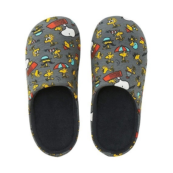 出典:www.uniqlo.com大人気のスヌーピーの仲間が描かれたピーナッツルームシューズは、ユニクロなら約1000円で購入できます!グレーにイエローのウッドストックが映えますね。