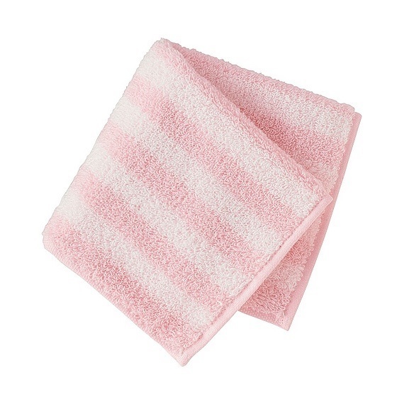 出典:www.uniqlo.com上のふわかるシリーズのミニタオルです。性別も年齢も問わないデザインのふわかるコットンミニタオルは、1枚295円+税。ピンクのほか、グレーやブルー、無地もあります。