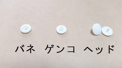 ・プラスチックスナップボタン (今回は『バネ』2つ・『ゲンコ』3つ・『ヘッド』5つ)