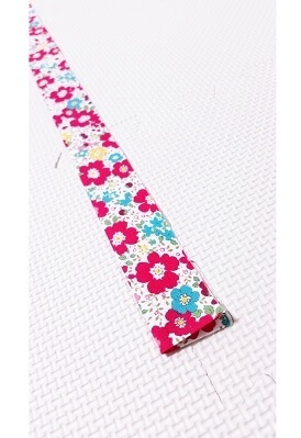 ストラップの形に布を折る。(折ったらその都度しっかりとアイロンをかける。)
