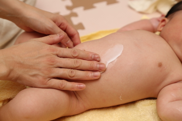 医師から処方された保湿剤がある場合には、そちらを優先して使ってください。ない場合には、市販のベビーオイル、ベビーローションなどを使用してください。保湿剤を選ぶ時には、低刺激のベビー専用のものを選ぶようにしてくださいね。