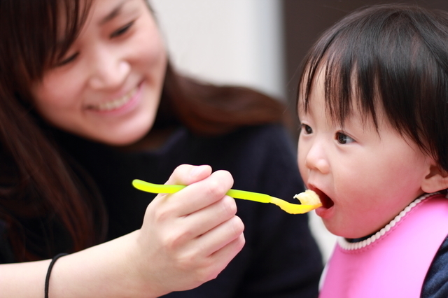 初めての食材を与える場合は、小児科の開いている午前中に小さじ1杯から与えて、その後様子を見てみると良いでしょう。 午前中に与えるのは、数時間経ってからアレルギーが発症することもあるためです。