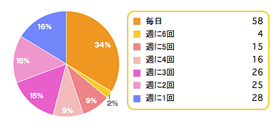 続いて「週に1回」(16%)、「週に2回」(15%)、「週に3回」(15%)と続きました。教室に通っている場合は、週に1・2回という方が多いかもしれません。