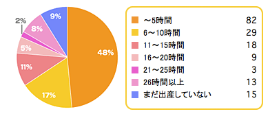 出典:www.combibaby.com妊娠中運動をしていなかった方に、分娩所要時間をお伺いしました。