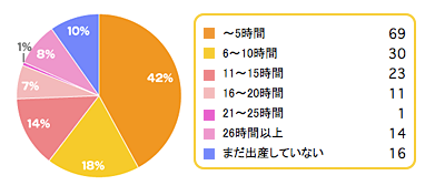 5時間以内という方が意外と多く42%、そして6時間〜10時間が18%と続きました。妊婦さんの時期は、体調も気分も人それぞれです。どこまで動いていいのか?どのように過ごせばいいのか?自分で判断していいのかもわからないくらい。