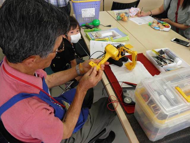 出典:www2.tokai.or.jpお菓子のおまけについているようなおもちゃから、大きな電動乗用車まで壊れたおもちゃをなんでも直してくれます。木製玩具、ぬいぐるみ、ラジコンなど修理してもらえるおもちゃはとても幅広いです。