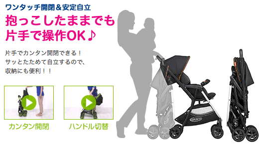 出典:www.gracobaby.jp4つ目は、ワンタッチで簡単にベビーカーを開閉できること。