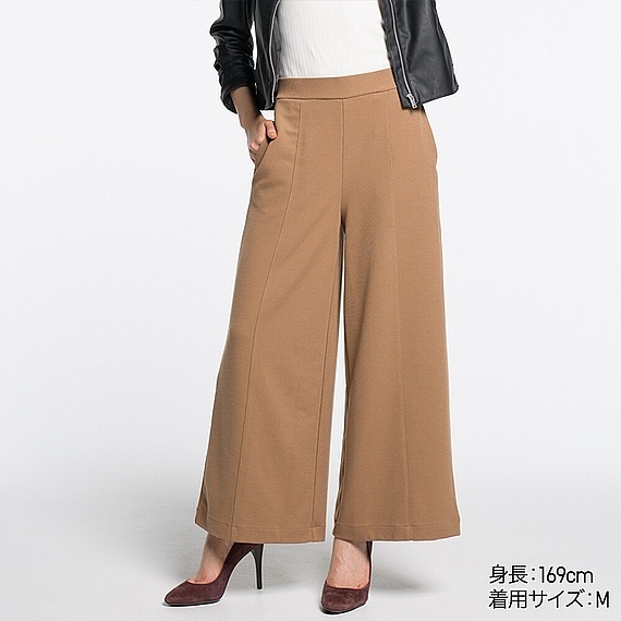 出典:www.uniqlo.comこちらはマタニティ専用ではありませんが、サイズがXLまで展開されているので、大きいサイズを選べば妊婦さんでも大丈夫ですよ。こちらは上品なミラノリブを使ったワイドパンツです。きれいなシルエットが出るので、仕事用としてもおすすめです。