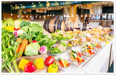 出典:www.sunmeadows.co.jpお腹が空いたらセンターハウス内のレストランサンダンスで開催しているナチュラルビュッフェに行ってみましょう。