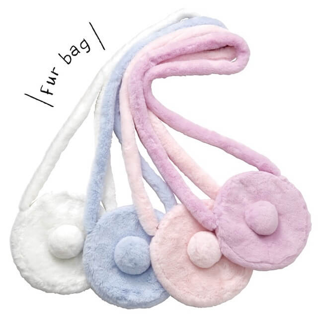 ホワイト、ブルー、ピンク、ラベンダーの4色で、ふわふわの質感が気持ちよさそうです。サイズは27×2×18センチ。子どものハンカチとティッシュを持たせる専用バッグにしてもいいかもしれませんね。
