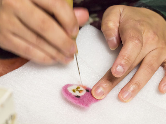 羊毛フェルトは、羊毛に針を何度も刺してフェルトのようにしっかりした形に整えていきます。そのもこもことした質感と温かい雰囲気が今人気ですね。