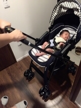 出典:www.combibaby.comコンビのベビーカーとチャイルドシート、我が家のどちらでも使えるということで購入。ベビーカーにまず使ってみました。