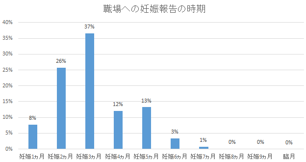 私は妊娠8週(妊娠3ヶ月)に上司に報告しました。この時期に報告したのは、心拍が確認されおそらく流産の危険性も減ったこと、母子手帳をもらってきて、いよいよ出産が現実味を帯びてきたこと、つわりなどの症状が出てきたことなどからです。