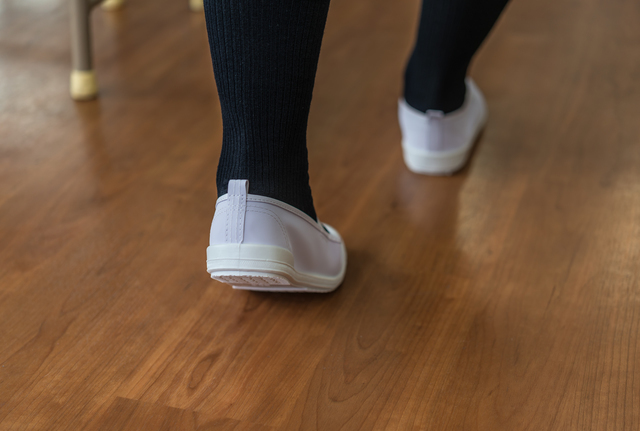 上履きの靴底のすり減りもチェックポイントです。靴底がすり減っていると、滑り止めがすり減っているため滑って転びやすくなったり、長時間履いていると足が疲れやすくなったりします。