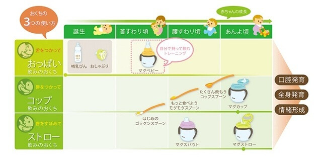 こちらのセットは5ヶ月、7ヶ月はマグパウト、9ヶ月からマグカップ・マグストローへの練習が可能です。子どもの成長過程がこれによってみられると思うと楽しみでなりません!これからもこちらを使って練習していきたいと思います。