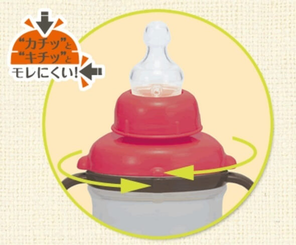 これでおでかけの時や赤ちゃんが少し逆さにしてしまった時でも、漏れにくく安心です!ママの使いやすさにもこだわっているんですよ。