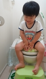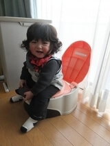 すると、自分一人で座れるし、床に足がついて安心できるのかすぐおまるで出来るようになりました。それから普通の便器への移行もあっという間でした。
