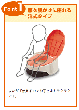 出典:shop.combi.co.jp洋式タイプのメリットとは一体何でしょうか。洋式タイプだと、洋服を下ろして座るだけで良いのでママも子どもも楽にトイレができます。