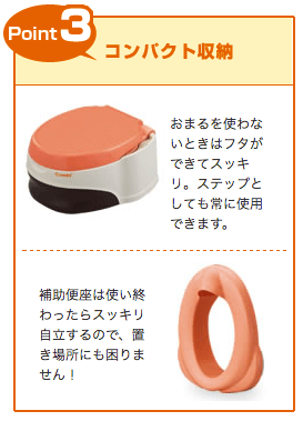 出典:shop.combi.co.jpおまるや補助便座の購入を検討する時に気になることの1つは、収納についてではないでしょうか?広いトイレもありますが、そうでない場合もありますよね。