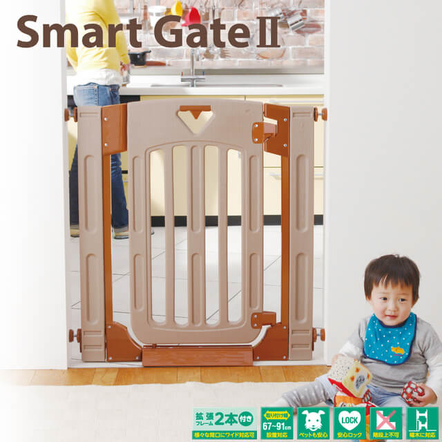出典:www.nihonikuji.co.jp階段上には設置しないでください、という注意書きがつくベビーゲートが多い中で、階段上にも設置できるよう開発されたのが、こちらの「スマートゲイト2プラス」。