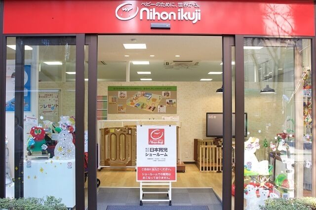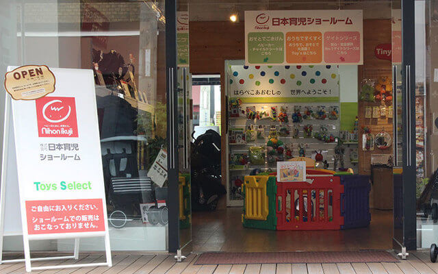 日本育児では、ベビーゲートをはじめ、チャイルドシートやベビーカーなどの育児用品を実際に見たり触れたりできるショールームを東京と大阪に展開。