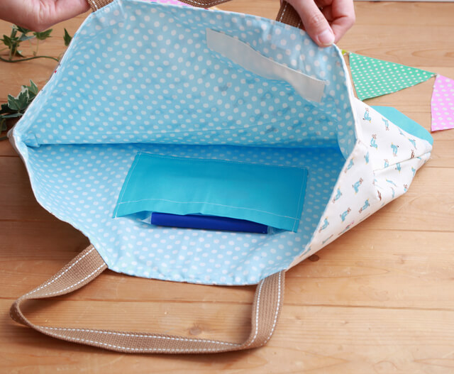 やや薄めのラミネート生地なので縫いやすく、ランチョンマットやトートバッグ、ポーチ等の小物、ランドセルの雨よけカバーなどに使うことができます。