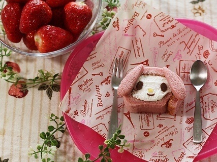 【3】もち食感ロール(イチゴ&ミルク)アレンジでかわいいマイメロディ