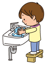 子どもはまだ洗面台に手が届きません。踏み台を使うと一人で手を洗うことができます。