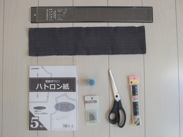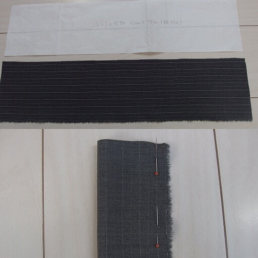 - ▼【1】型紙作成・裁断・マチ針をうつ