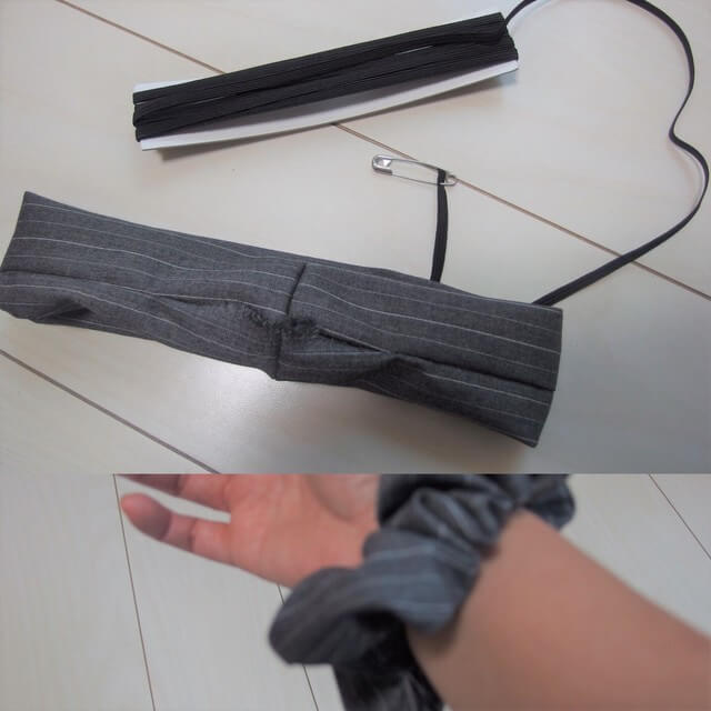 シュシュの場合ゴムを通して伸縮するので、ミシンを持っていない場合は、このボンドで仮止めをしてから手縫いをすると丈夫に作れますよ。