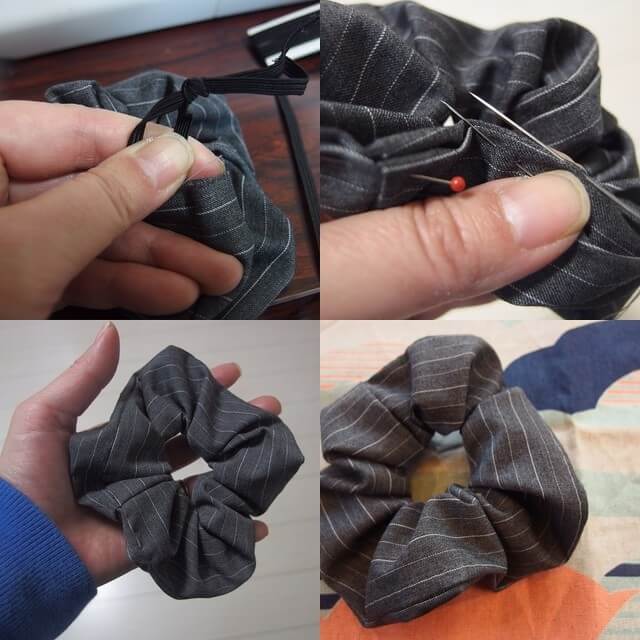 いかがでしたか?細かい部分もていねいに作業することで、仕上がりがぐっと良くなりますよ。シュシュを輪にして縫い合わせる部分は、少し難しいかもしれませんが、マチ針を3か所くらい打ち、ゆっくりとミシンを踏めばOKです!