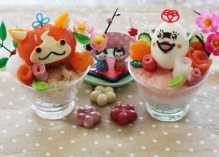 出典:ameblo.jp市販されているお寿司の素とデコふり、スモークサーモンとゆで卵を使った妖怪ウォッチのひな祭りカップ寿司です。人気のジバニャンと女装?したウィスパーでかわいいお内裏様とおひな様を作りましょう!
