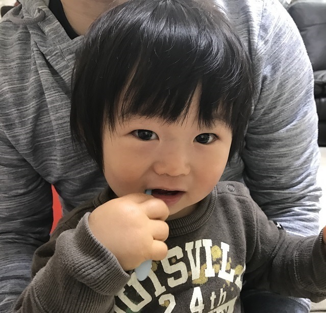 まだお子さんは前歯しかないようですが、これで慣れておけば、奥歯が生えても安心ですよね。