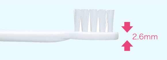 ご安心ください!横方向にはよく曲がり、縦方向には曲がりにくくすることで安全性と清掃性の2つを兼ね備えたハブラシなのです。