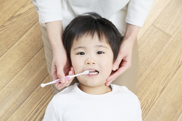 ハブラシに慣れるのは早い時期からが良いのですが、最終的に小さな子どもの歯をきれいにするのは、ママやパパの仕上げみがきです。