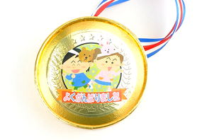 出典:yy-okashi.com運動会や学芸会、パーティなどイベントに合わせてオリジナルのメダルが作れます。こちらも直径11cmの箱の中にお菓子が入れられます。