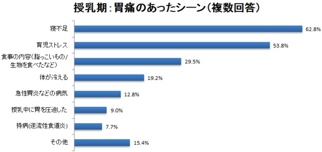 続いて授乳期のママたちが胃痛を感じたのはどんな状況だったか、をアンケート。