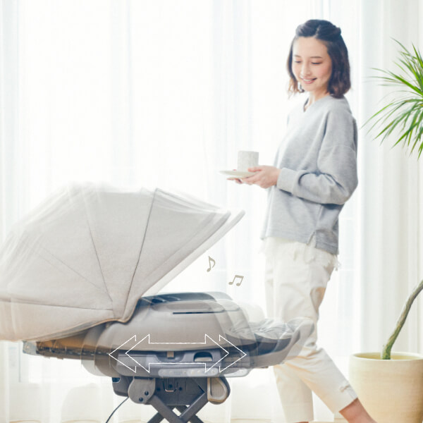 自動で揺れるから、グズグズ赤ちゃんも、ぐっすりスヤスヤ。