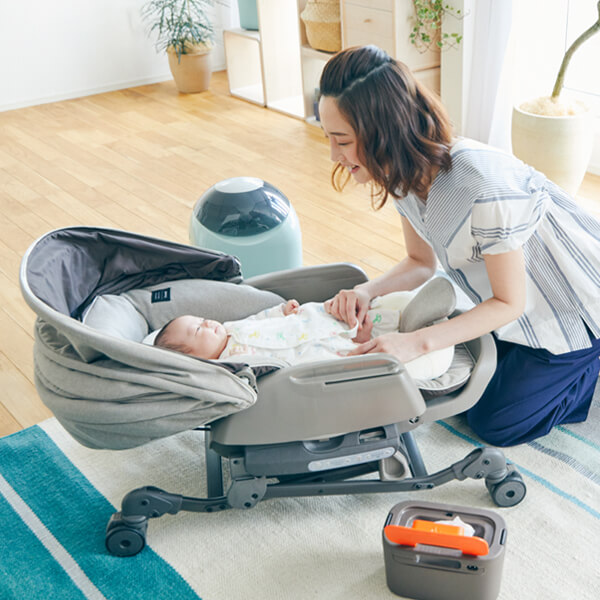 ベビー用品のプロがおすすめ、眠りの環境を考えたコンビのスウィングベッド&チェア『ネムリラ AUTO SWING BEDi(ベディ)』。