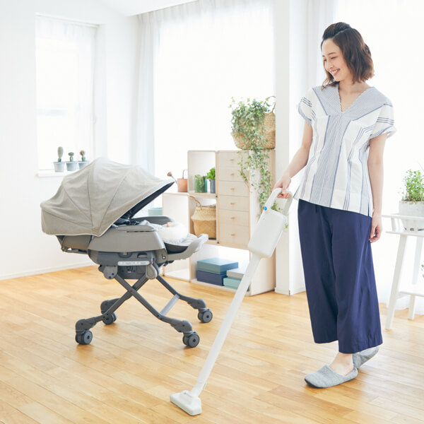 掃除や洗濯で家事をしていても、いっしょに移動できるからママは安心ですし、高さを調節できるため、赤ちゃんを床のホコリから守ることもできます。