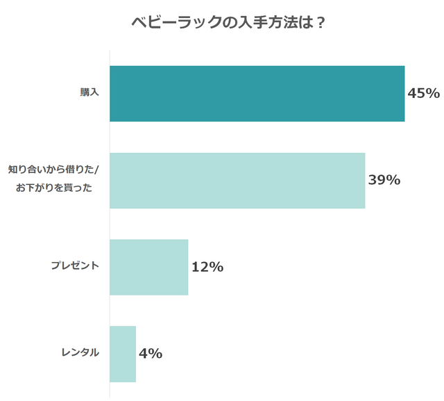 ベビーラックを入手したか聞いてみると、半数のママパパが入手したと回答。数ある育児アイテムの中でもポピュラーな商品であるといえるでしょう。