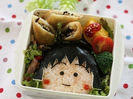 ちびまる子ちゃんだけでなく、クラスメイトや脇役たちの活躍も人気に一役買っている国民的アニメであるため、多くキャラ弁に応用できるのも魅力です。