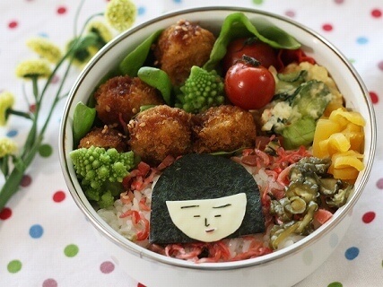 出典:ameblo.jp髪型にひと手間加えたちびまる子ちゃんのお弁当です。